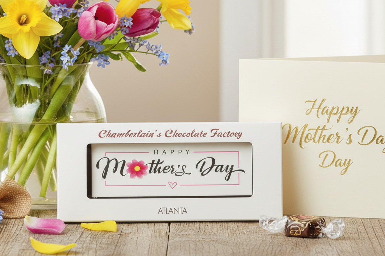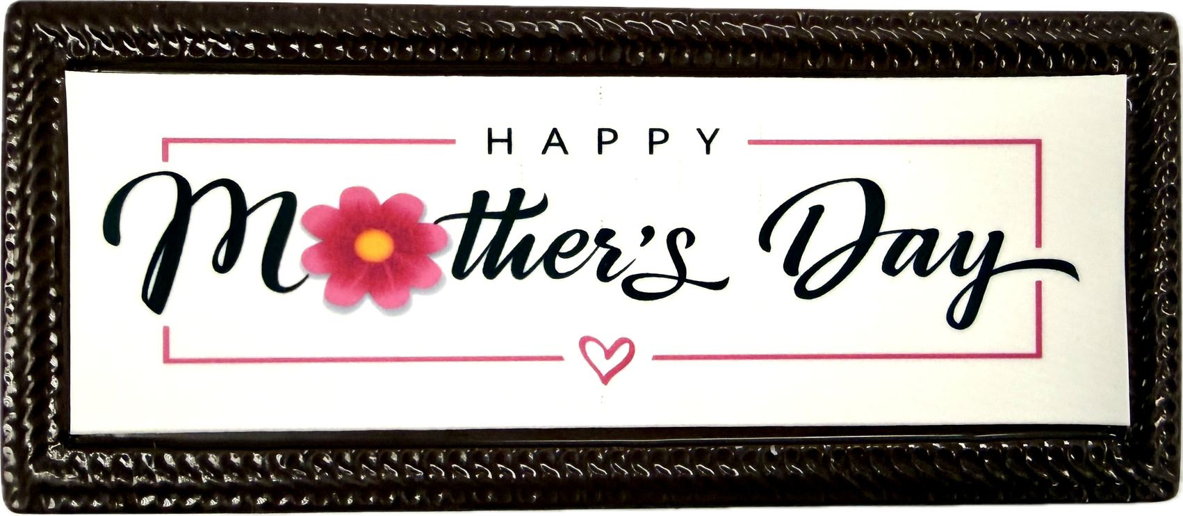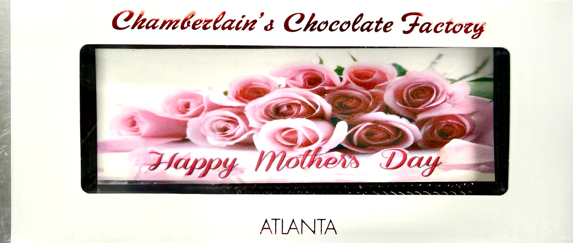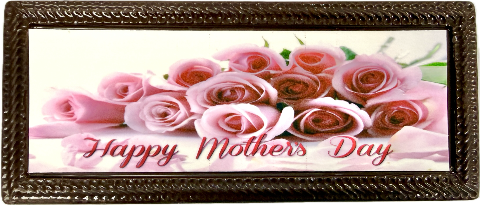 This large chocolate bar features an edible design just for Mom. Choose from one of two designs, to make it a unique and tasty treat for any chocolate lover. Available in our milk, white, or semi-sweet chocolate. 7" by 3.25"