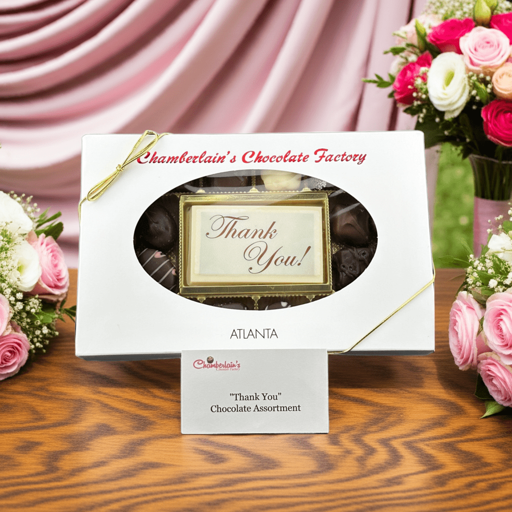 Demuestra tu agradecimiento con nuestra Barra de Chocolate "Thank You", elegantemente rodeada de nuestros deliciosos chocolates surtidos. Ya sea para un amigo, un compañero de trabajo o un cliente valioso, este regalo atento es una forma dulce de expresar gratitud. Elige entre una o dos libras de chocolate para que tu gesto sea aún más placentero y memorable.
