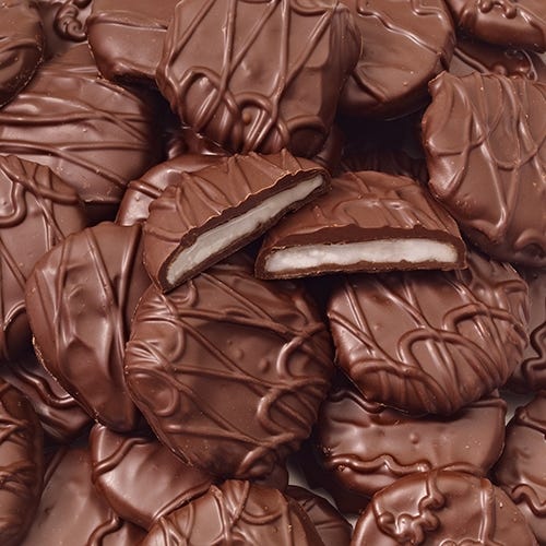 Deléitate con la suntuosa experiencia de nuestras hamburguesas de chocolate amargo y menta. Cada delicia presenta un centro aterciopelado y mentolado rodeado por un delicioso chocolate amargo. Disfrute del equilibrio perfecto de sabores y texturas con nuestra deliciosa porción de media libra, que ofrece una sensación de sabor rica y satisfactoria.