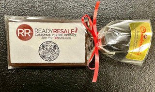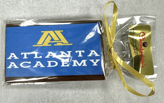 Eleve su marca u ocasión con nuestra barra de chocolate personalizada del tamaño de una tarjeta de presentación, con su propio logotipo, imagen o nombre corporativo. Elija entre chocolate con leche, chocolate blanco o chocolate semidulce para adaptar el sabor a su gusto. Personalice aún más su presentación seleccionando el color de la cinta que atará delicadamente el lazo de su barra de chocolate, haciendo que toda la barra, incluida la cinta, sea completamente comestible. Es una forma deliciosa y memorable de dejar una impresión duradera.