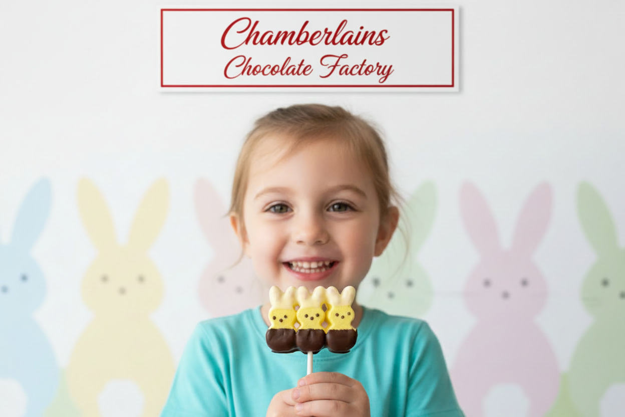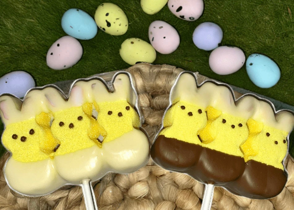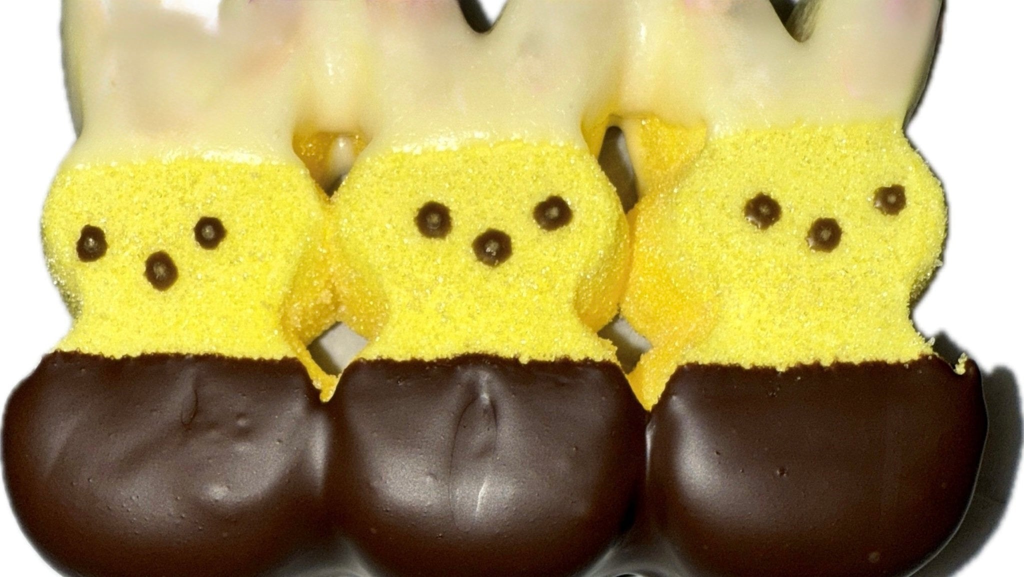 Chocolate Dipped Easter Peep Trio have 3 adorable Peep Bunnies hand-dipped in our signature Chamberlain's Chocolate and hand decorated. Perfect as a gift, or just a yummy treat.