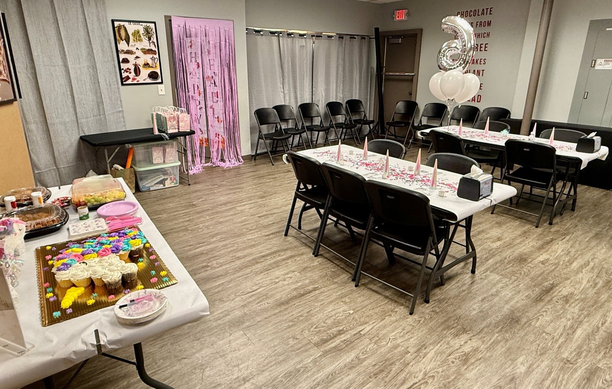 Our event space is available for up to 45 kids. Kids must be age 5 or older.